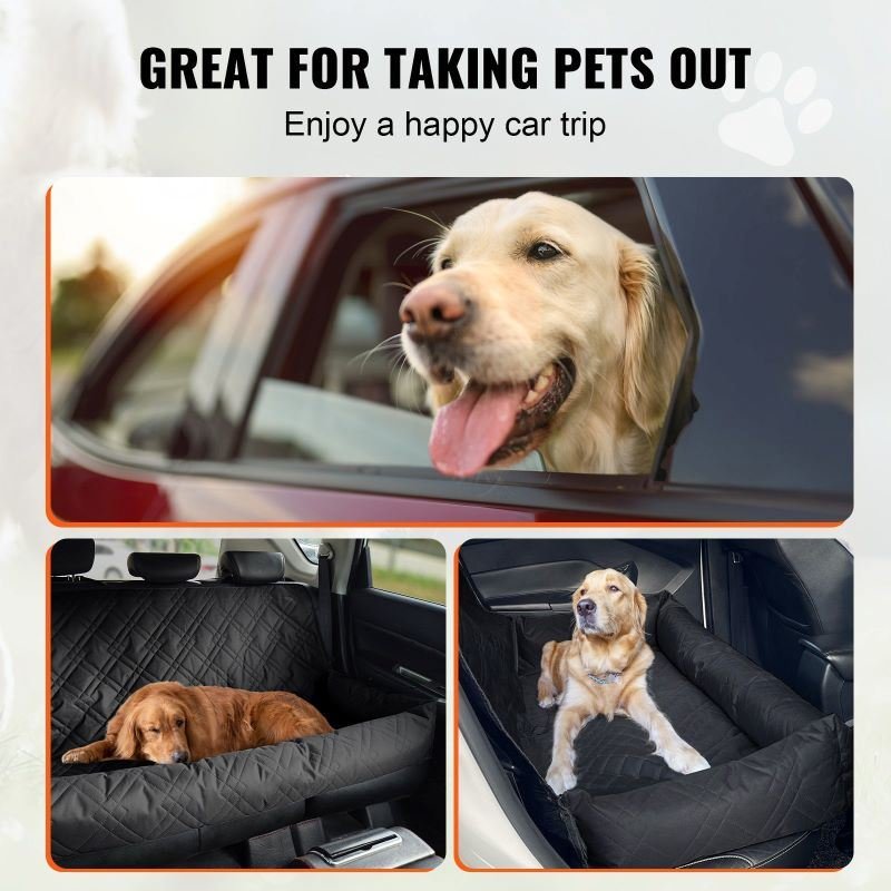 Features adjustable seat belts and a pet safety strap for secure attachment.