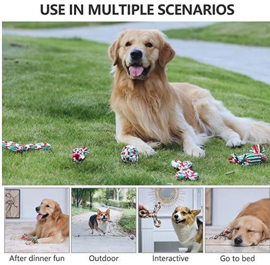 1. [100% pure cotton safe material]: This set of dog rope toys is made of approved natural; 100% non-toxic; compact and bright cotton. The materials and pigments are all food-grade; allowing your dog to play safely ; Chew; and can be cleaned.
