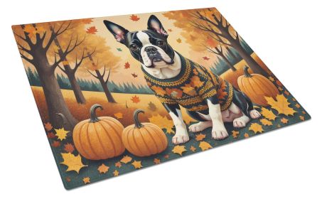 Boston Terrier Fall Kitchen Pumpkins Glass Cutting Board Decorative Tempered Glass Kitchen Cutting and Serving Board Large Size Chopping Board