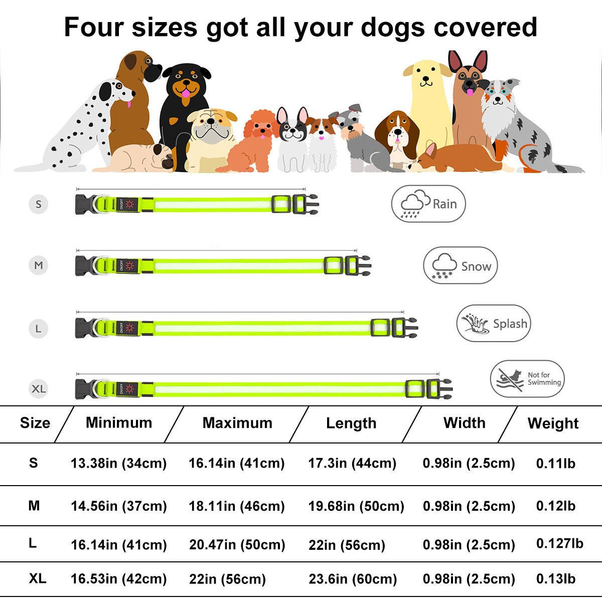 Safety Dog Collar: Super bright for night walking, lightweight collar makes your safe in the darkness, and you will find your pet more easily, highly visible to car drivers,walkers, joggers, cyclists, motorists etc. Our night collar dog will keep your pets away from some potential dangers.