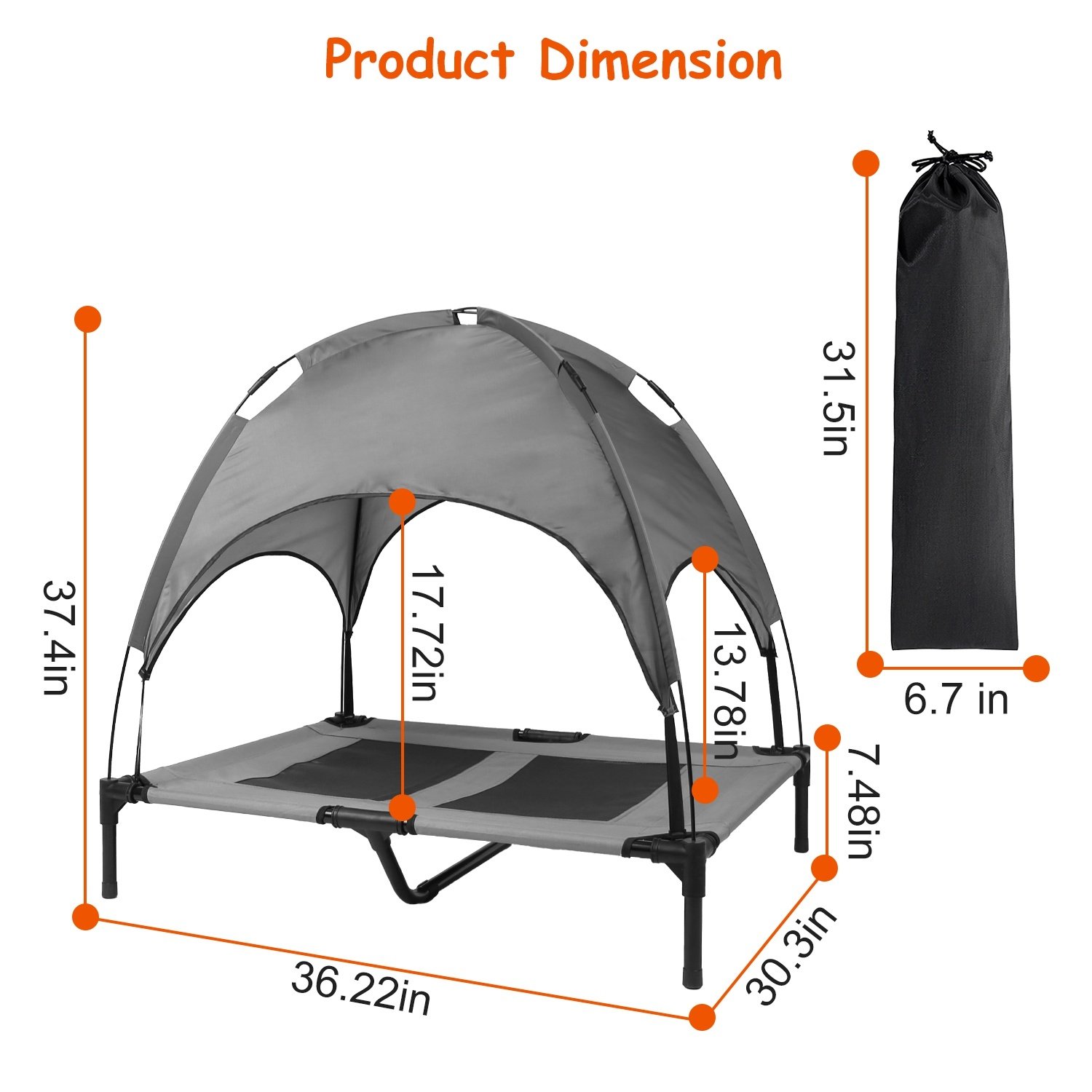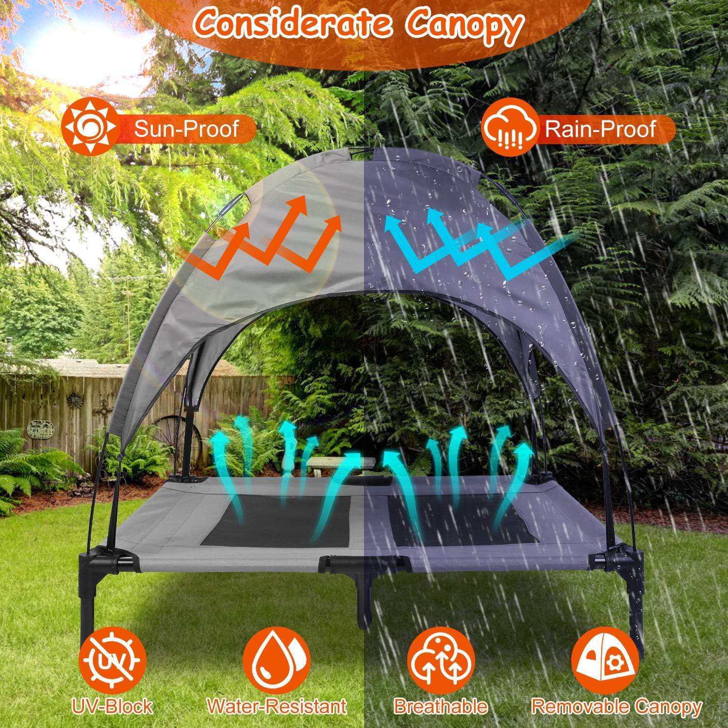 Outdoor Elevated Dog Bed Cooling Raised Pet Cot Canopy Shade Tent Pet Cooling Bed with Removable Canopy for Outside Yard Camping Beach