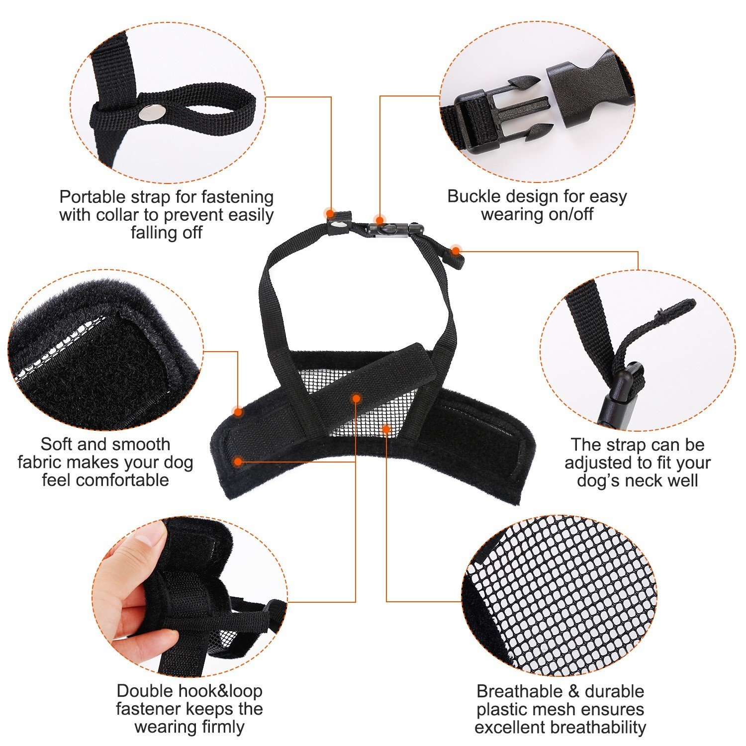 *Adjustable Design*:The muzzles mouth part and the strap can be adjusted; making sure the best size for your dog. Buckle design ensures quick wearing on/off.