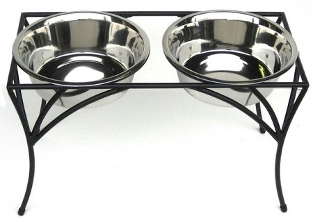 The simple, yet elegant design of this raised dog feeder will go with any home decor. The Arbor Elevated Double Feeder allows you to give your pet's food and water at the same time. The raised double diner dog bowl feeder set comes with non-skid plastic tips on legs. The Arbor diner has no top bars, adding to the minimalist, organic look.