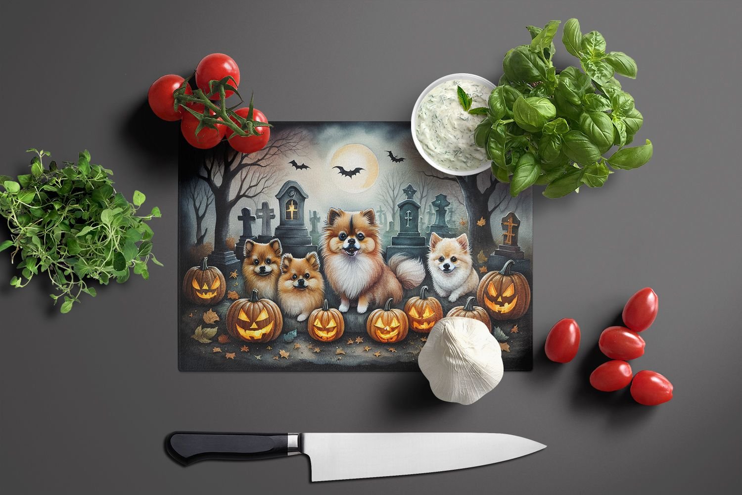 Home > NEW Pomeranian Spooky Halloween Glass Cutting Board Decorative Tempered Glass Kitchen Cutting and Serving Board Large Size Chopping Board