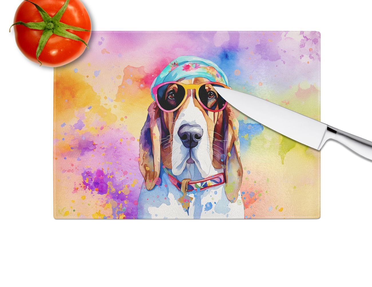 Home > NEW Basset Hound Hippie Dawg Glass Cutting Board Decorative Tempered Glass Kitchen Cutting and Serving Board Large Size Chopping Board
