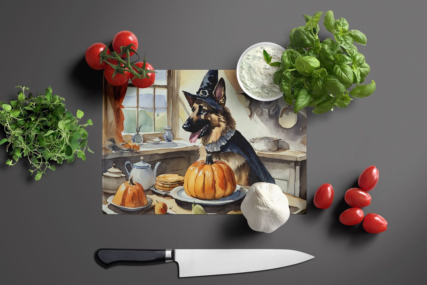 Glass Cutting Board featuring breed specific German Shepherd artwork. Celebrate Halloween with this Halloween Cutting Board. Introduce your kitchen to the vibrant, large Decorative Glass Cutting Board from Caroline's Treasures. Crafted from resilient tempered glass, this board is not only a utilitarian necessity but also a colorful art piece. With its generous dimensions of 15 inches in height and 12 inches in length, it offers ample space for all your cutting needs. Every piece showcases captivating artwork from distinguished artists, bringing an aesthetic edge to your kitchen. Beyond its attractive design, this cutting board ensures your countertop stays pristine and unscathed, owing to its heat-resistant properties. Engineered with user convenience in mind, it features non-skid feet for stability, and rounded corners for additional safety. Its robust construction renders it virtually unbreakable, guaranteeing longevity. The board comes with protective feet bumpers, maintaining its position during use. This product is recommended to be hand washed only. Proudly printed and assembled in the United States, this cutting board exemplifies superior craftsmanship. With Caroline's Treasures' Decorative Glass Cutting Board, you're investing in a blend of functionality and artistic flair.