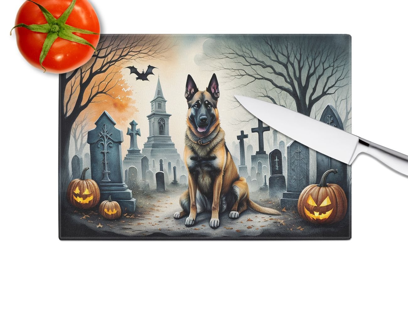 Home > NEW Belgian Malinois Spooky Halloween Glass Cutting Board Decorative Tempered Glass Kitchen Cutting and Serving Board Large Size Chopping Board