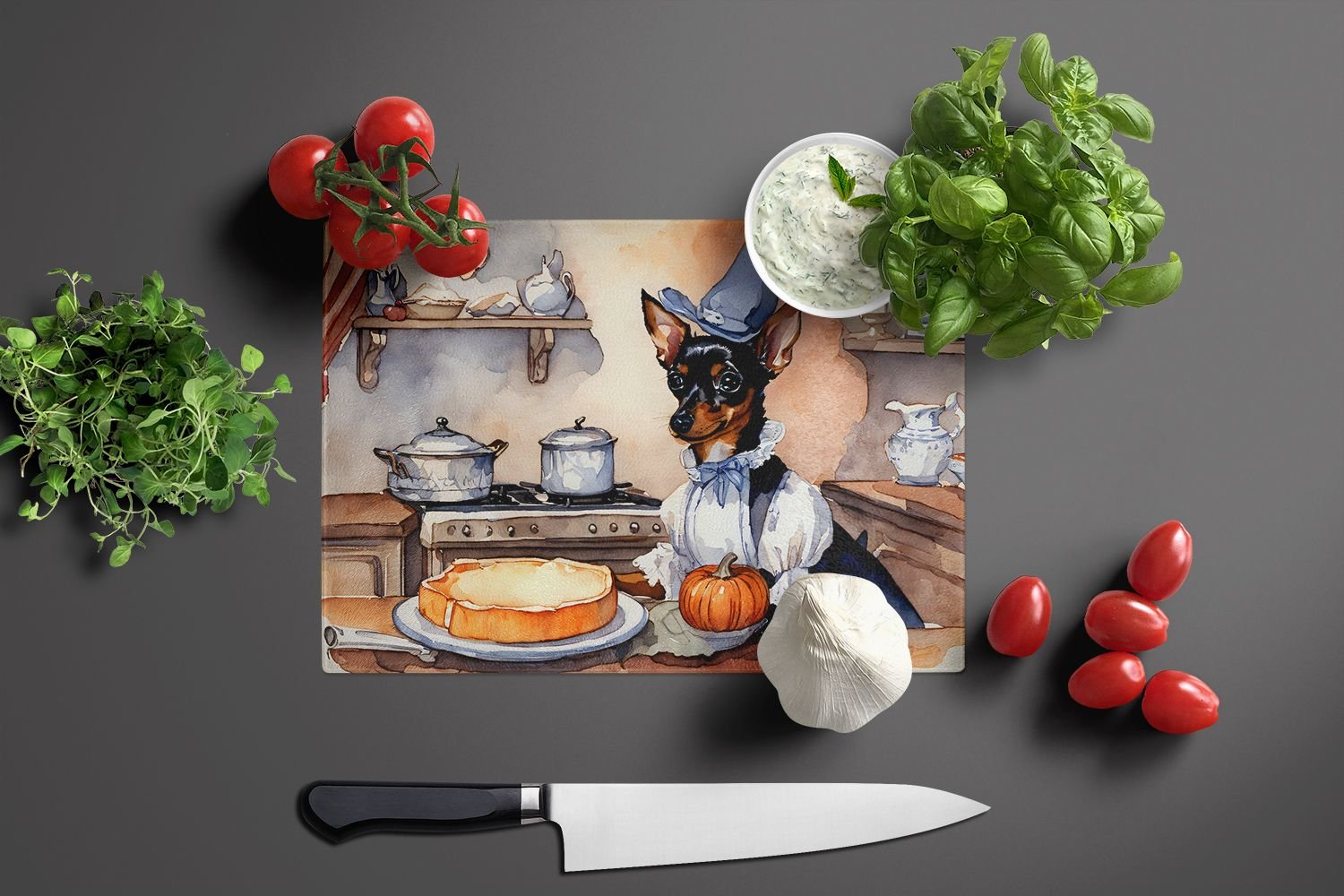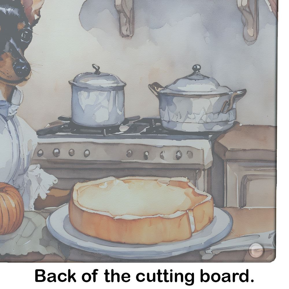 Glass Cutting Board featuring breed specific Miniature Pinscher artwork. Celebrate Halloween with this Halloween Cutting Board. Introduce your kitchen to the vibrant, large Decorative Glass Cutting Board from Caroline's Treasures. Crafted from resilient tempered glass, this board is not only a utilitarian necessity but also a colorful art piece. With its generous dimensions of 15 inches in height and 12 inches in length, it offers ample space for all your cutting needs. Every piece showcases captivating artwork from distinguished artists, bringing an aesthetic edge to your kitchen. Beyond its attractive design, this cutting board ensures your countertop stays pristine and unscathed, owing to its heat-resistant properties. Engineered with user convenience in mind, it features non-skid feet for stability, and rounded corners for additional safety. Its robust construction renders it virtually unbreakable, guaranteeing longevity. The board comes with protective feet bumpers, maintaining its position during use. This product is recommended to be hand washed only. Proudly printed and assembled in the United States, this cutting board exemplifies superior craftsmanship. With Caroline's Treasures' Decorative Glass Cutting Board, you're investing in a blend of functionality and artistic flair.