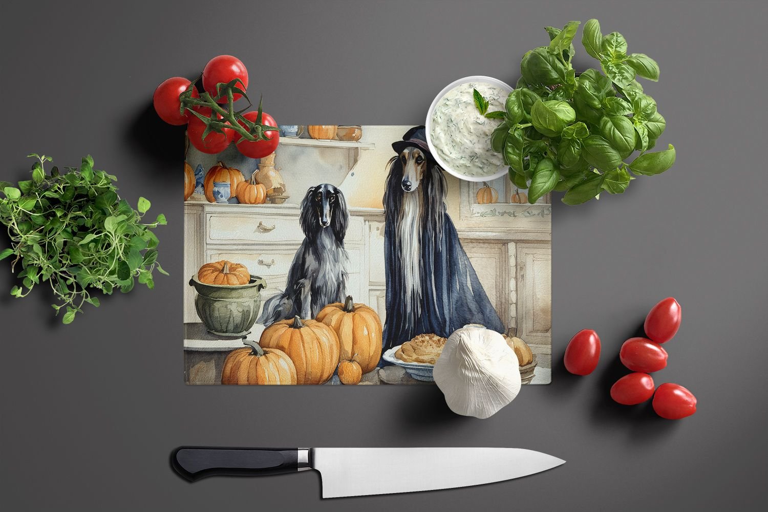 NEW Afghan Hound Fall Kitchen Pumpkins Glass Cutting Board Decorative Tempered Glass Kitchen Cutting and Serving Board Large Size Chopping Board