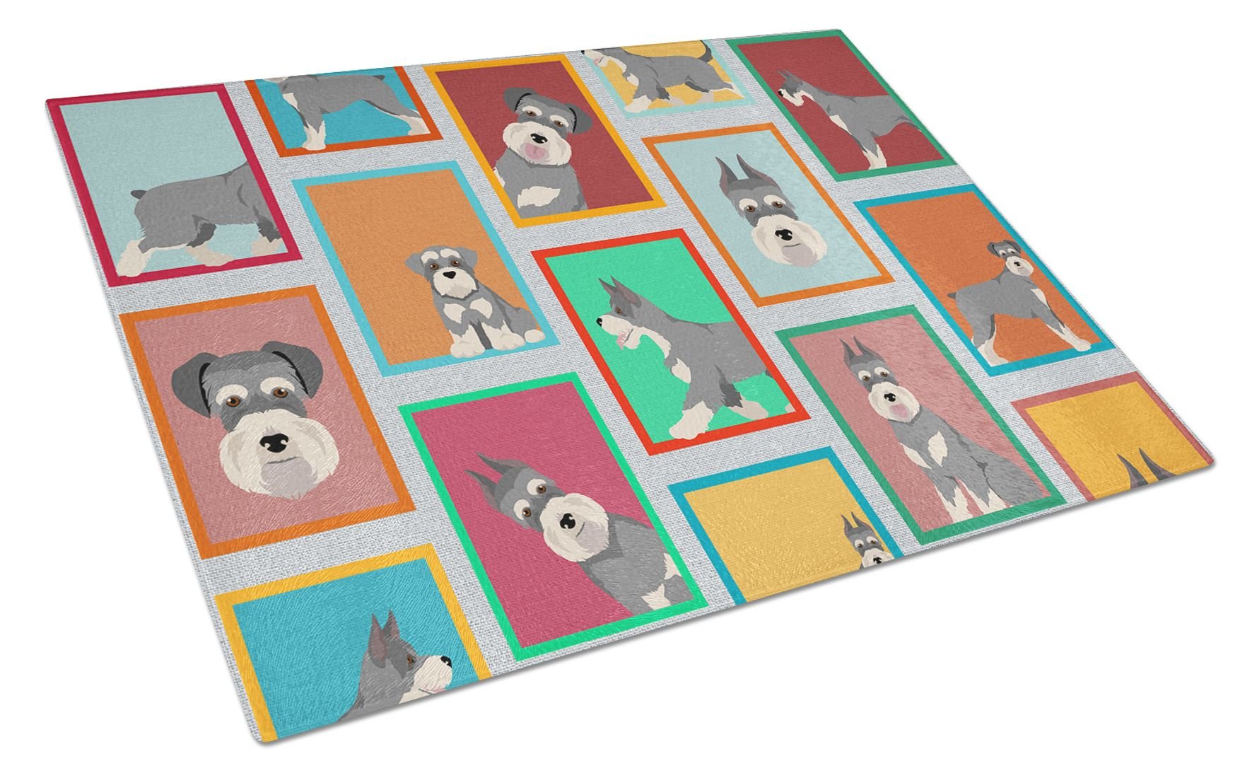 Glass Cutting Board featuring breed specific Schnauzer artwork. Introduce your kitchen to the vibrant, large Decorative Glass Cutting Board from Caroline's Treasures. Crafted from resilient tempered glass, this board is not only a utilitarian necessity but also a colorful art piece. With its generous dimensions of 15 inches in height and 12 inches in length, it offers ample space for all your cutting needs. Every piece showcases captivating artwork from distinguished artists, bringing an aesthetic edge to your kitchen. Beyond its attractive design, this cutting board ensures your countertop stays pristine and unscathed, owing to its heat-resistant properties. Engineered with user convenience in mind, it features non-skid feet for stability, and rounded corners for additional safety. Its robust construction renders it virtually unbreakable, guaranteeing longevity. The board comes with protective feet bumpers, maintaining its position during use. This product is recommended to be hand washed only. Proudly printed and assembled in the United States, this cutting board exemplifies superior craftsmanship. With Caroline's Treasures' Decorative Glass Cutting Board, you're investing in a blend of functionality and artistic flair.