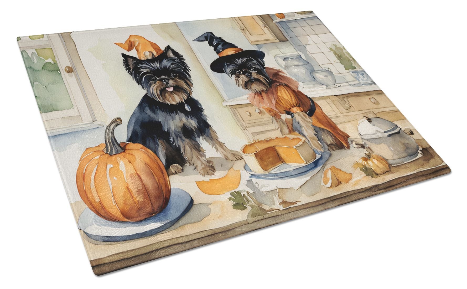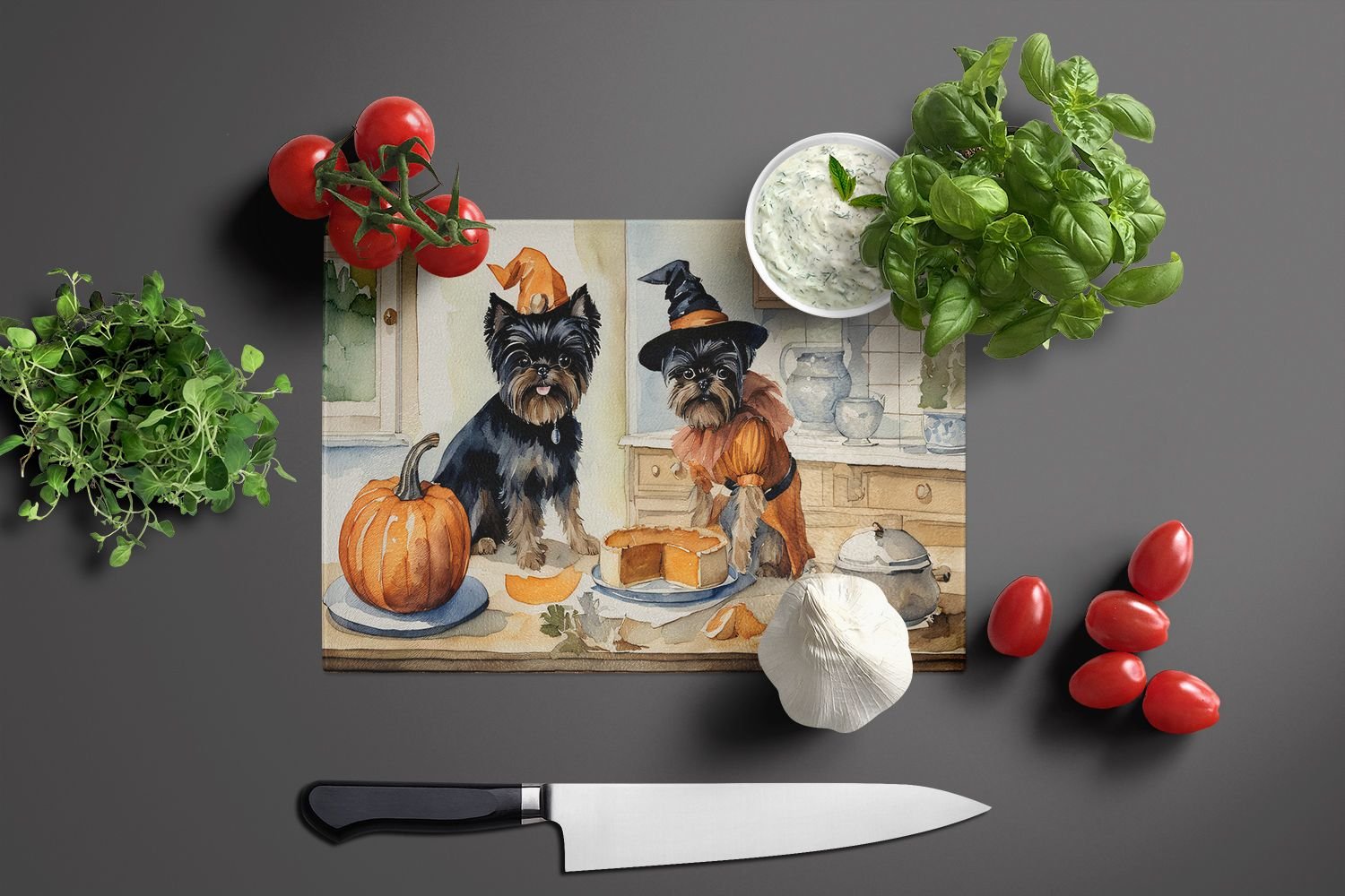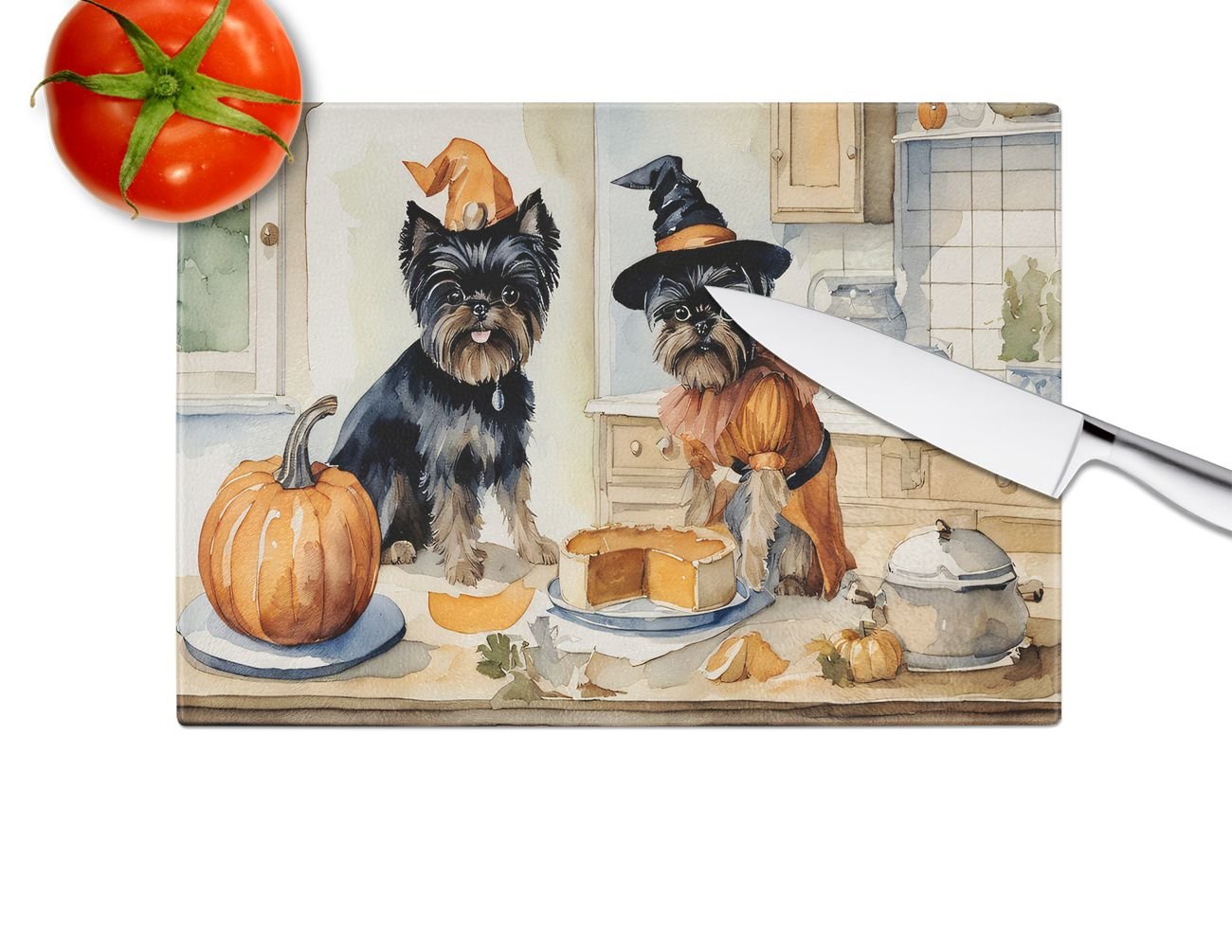 Glass Cutting Board featuring breed specific Affenpinscher artwork. Celebrate Halloween with this Halloween Cutting Board. Introduce your kitchen to the vibrant, large Decorative Glass Cutting Board from Caroline's Treasures. Crafted from resilient tempered glass, this board is not only a utilitarian necessity but also a colorful art piece. With its generous dimensions of 15 inches in height and 12 inches in length, it offers ample space for all your cutting needs. Every piece showcases captivating artwork from distinguished artists, bringing an aesthetic edge to your kitchen. Beyond its attractive design, this cutting board ensures your countertop stays pristine and unscathed, owing to its heat-resistant properties. Engineered with user convenience in mind, it features non-skid feet for stability, and rounded corners for additional safety. Its robust construction renders it virtually unbreakable, guaranteeing longevity. The board comes with protective feet bumpers, maintaining its position during use. This product is recommended to be hand washed only. Proudly printed and assembled in the United States, this cutting board exemplifies superior craftsmanship. With Caroline's Treasures' Decorative Glass Cutting Board, you're investing in a blend of functionality and artistic flair.