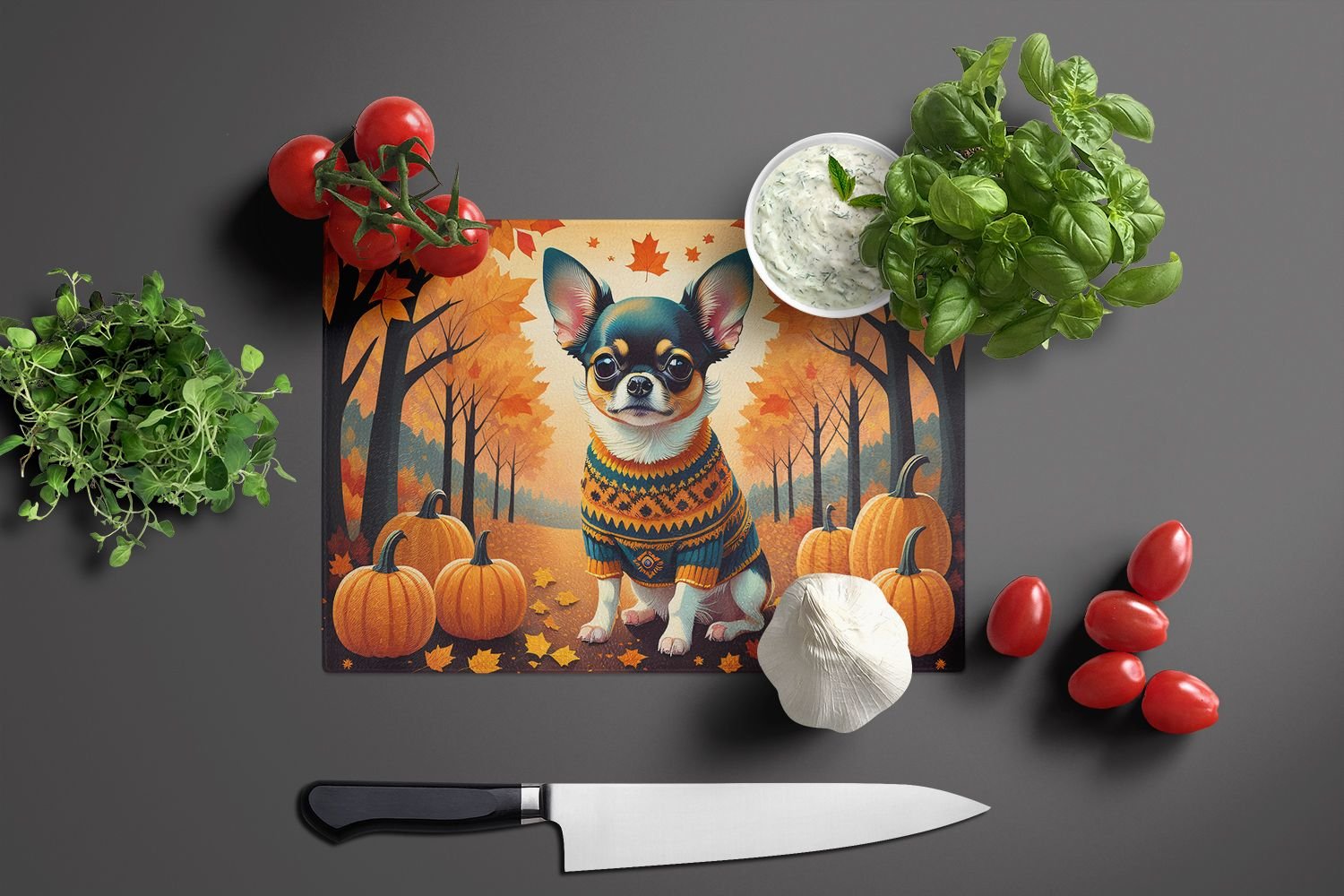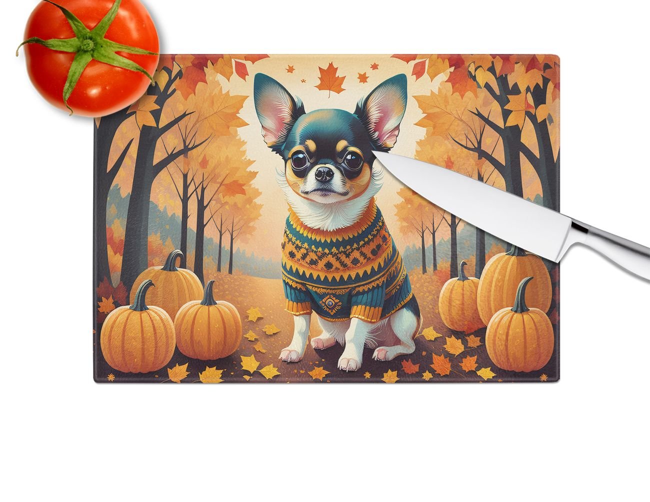Home > NEW Tricolor Chihuahua Fall Glass Cutting Board Decorative Tempered Glass Kitchen Cutting and Serving Board Large Size Chopping Board