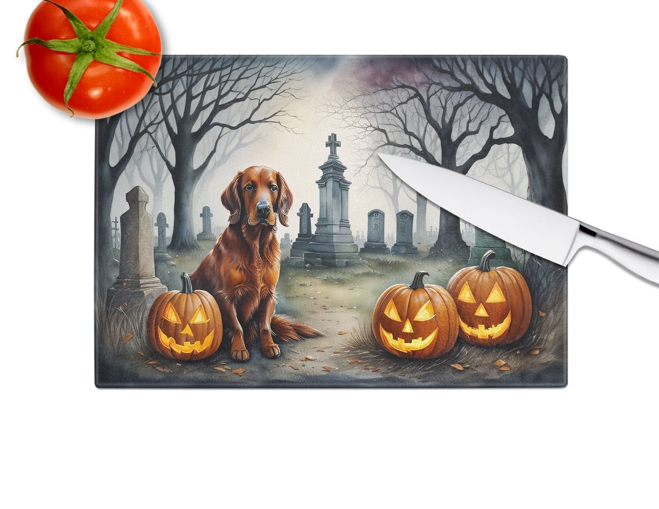 Home > NEW Irish Setter Spooky Halloween Glass Cutting Board Decorative Tempered Glass Kitchen Cutting and Serving Board Large Size Chopping Board