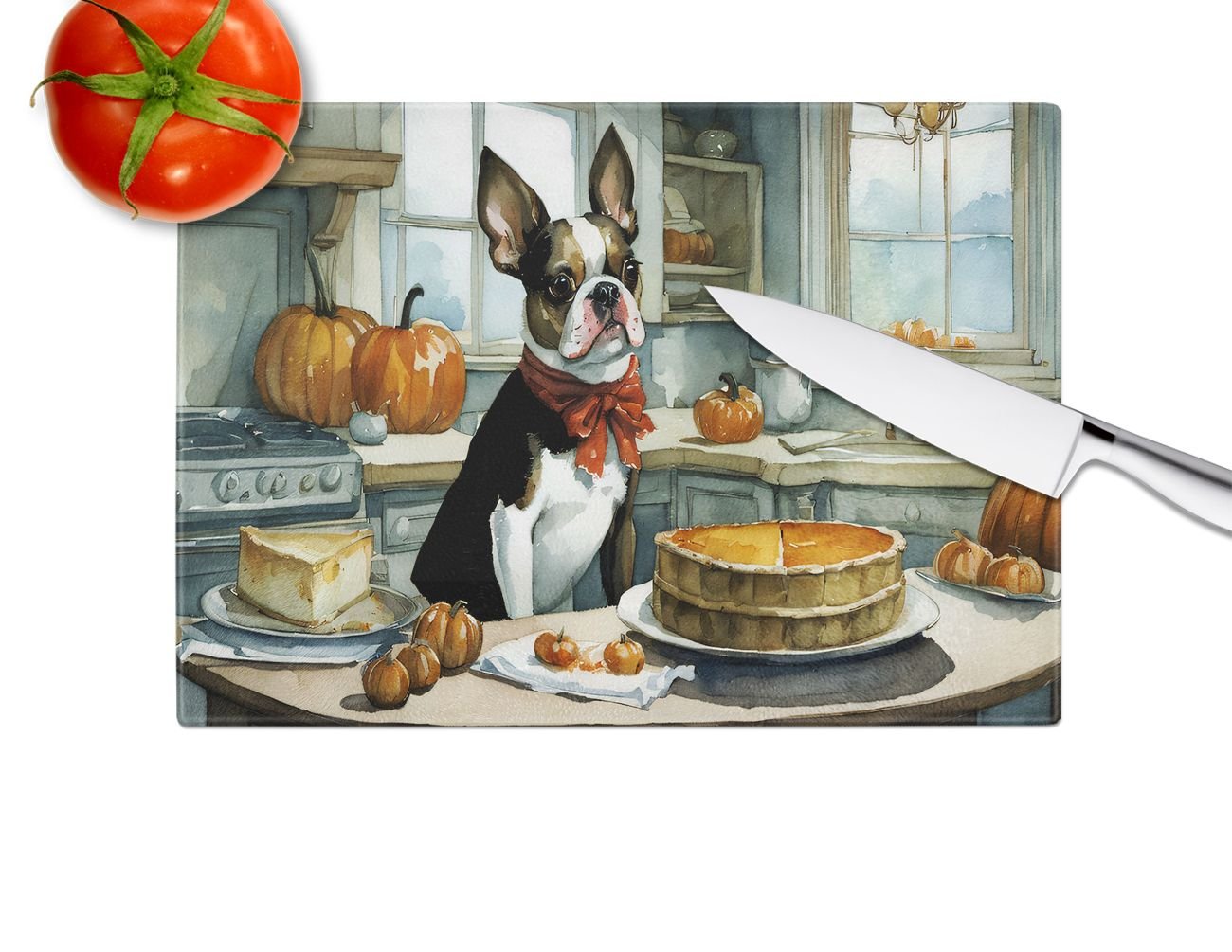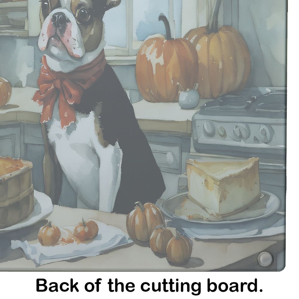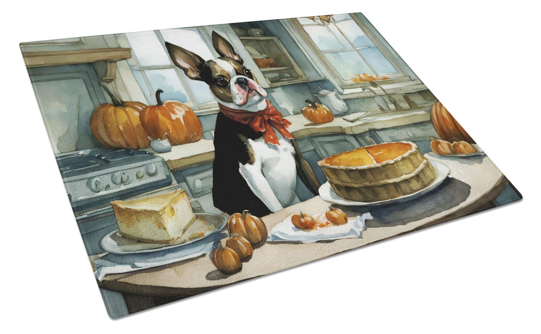 Home > Boston Terrier Fall Kitchen Pumpkins Glass Cutting Board Decorative Tempered Glass Kitchen Cutting and Serving Board Large Size Chopping Board