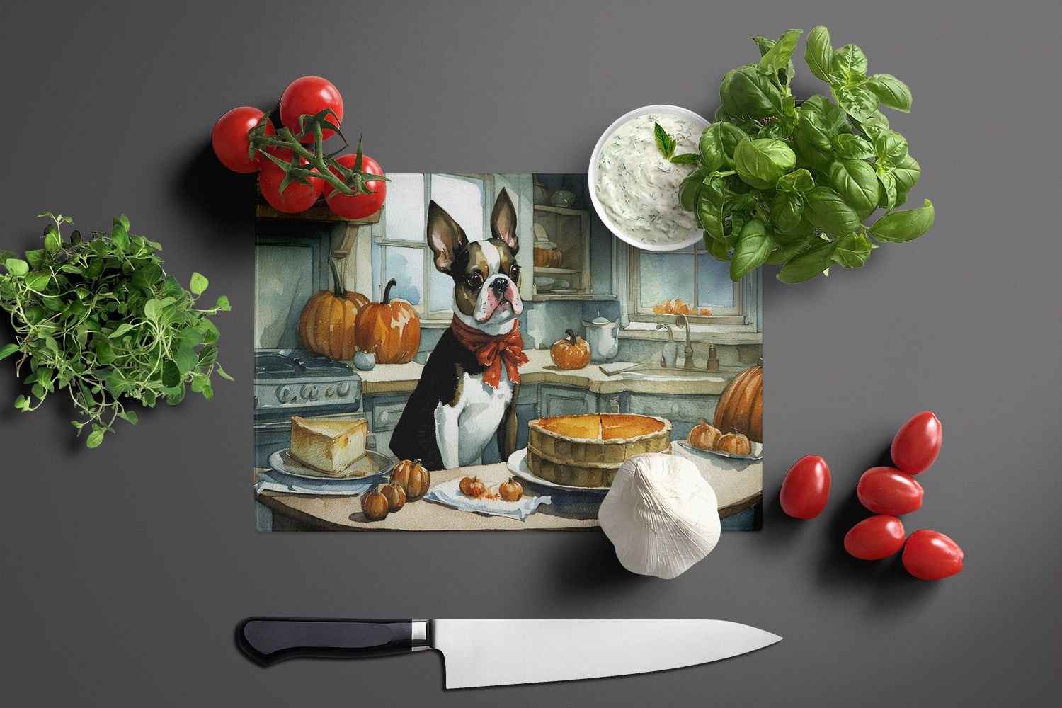 Boston Terrier Fall Kitchen Pumpkins Glass Cutting Board Decorative Tempered Glass Kitchen Cutting and Serving Board Large Size Chopping Board