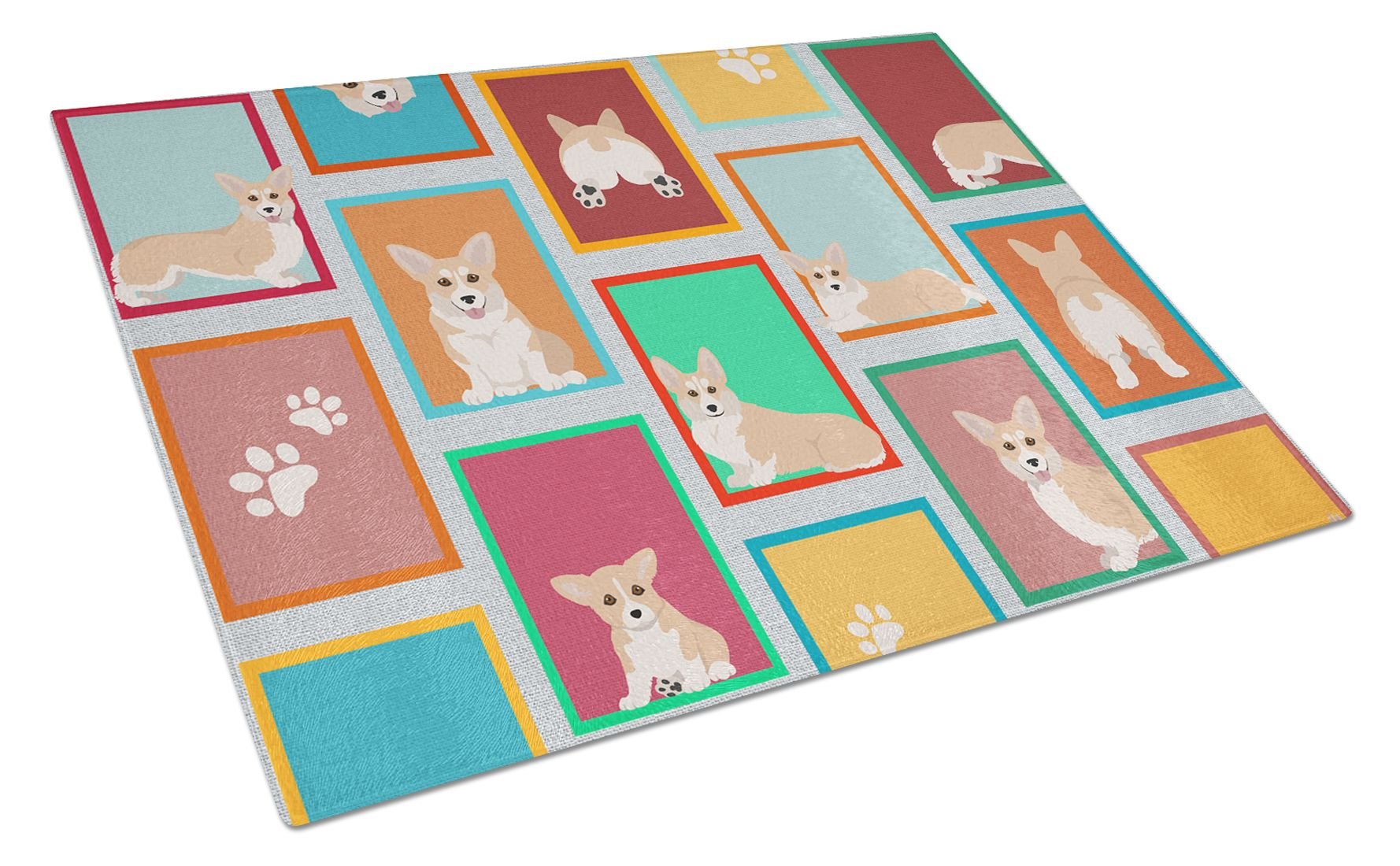 Glass Cutting Board featuring breed specific Corgi artwork. Introduce your kitchen to the vibrant, large Decorative Glass Cutting Board from Caroline's Treasures. Crafted from resilient tempered glass, this board is not only a utilitarian necessity but also a colorful art piece. With its generous dimensions of 15 inches in height and 12 inches in length, it offers ample space for all your cutting needs. Every piece showcases captivating artwork from distinguished artists, bringing an aesthetic edge to your kitchen. Beyond its attractive design, this cutting board ensures your countertop stays pristine and unscathed, owing to its heat-resistant properties. Engineered with user convenience in mind, it features non-skid feet for stability, and rounded corners for additional safety. Its robust construction renders it virtually unbreakable, guaranteeing longevity. The board comes with protective feet bumpers, maintaining its position during use. This product is recommended to be hand washed only. Proudly printed and assembled in the United States, this cutting board exemplifies superior craftsmanship. With Caroline's Treasures' Decorative Glass Cutting Board, you're investing in a blend of functionality and artistic flair.