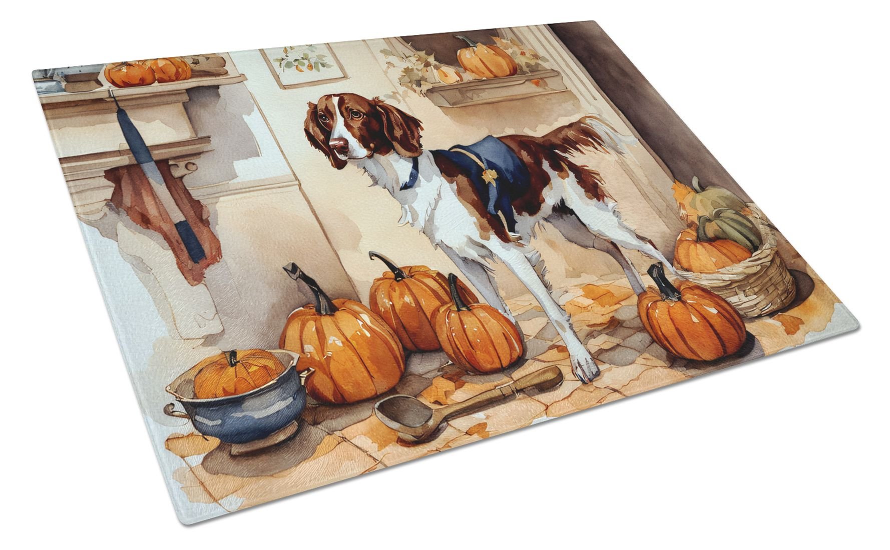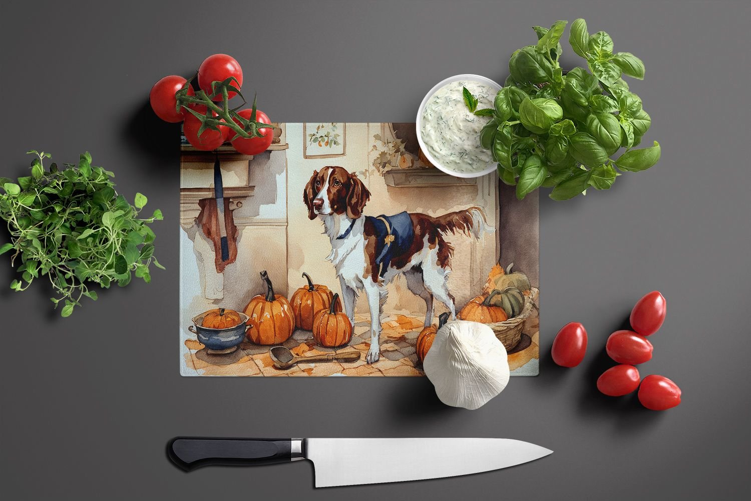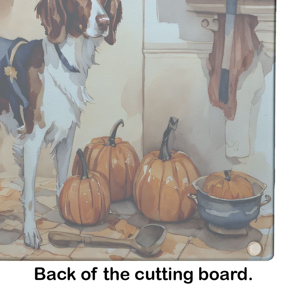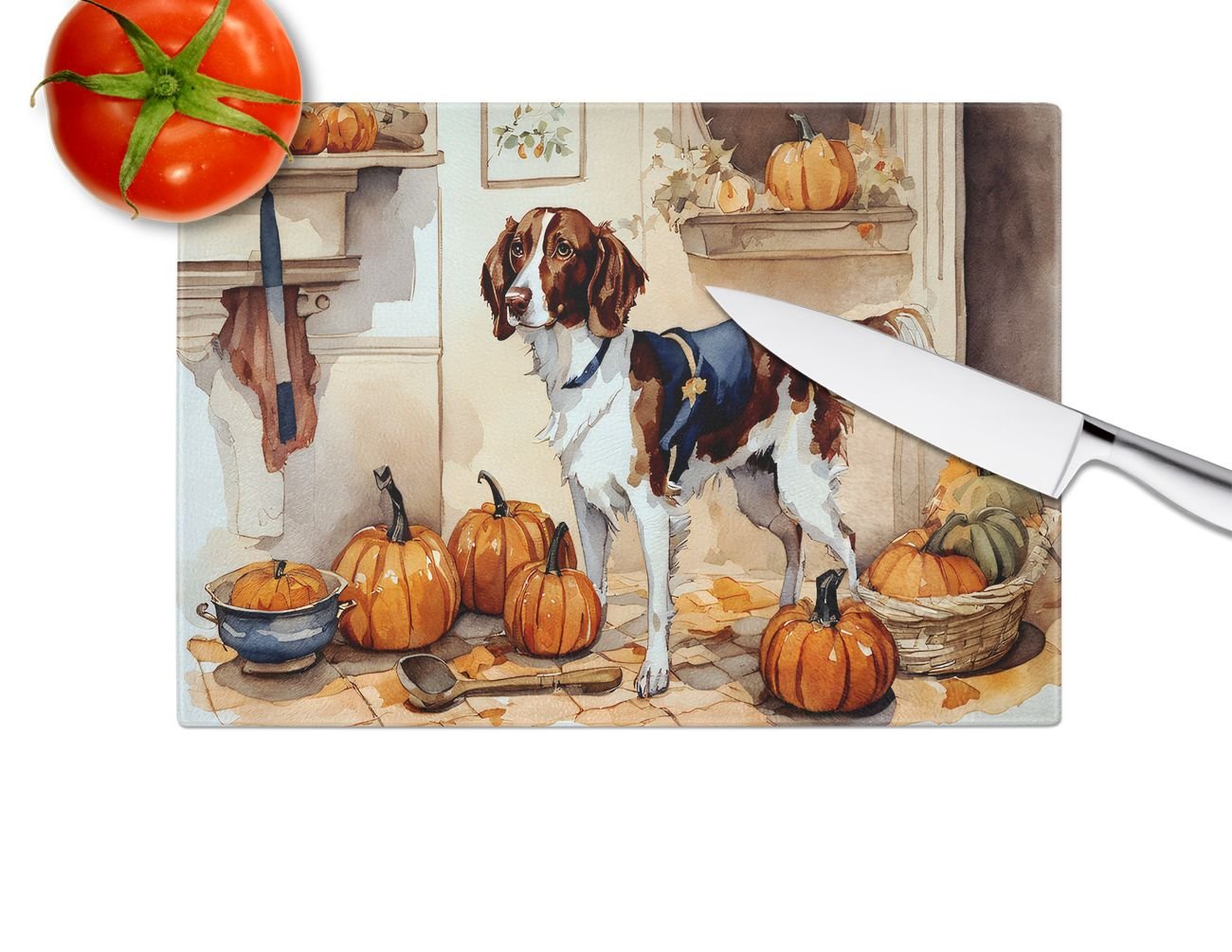 Glass Cutting Board featuring breed specific Brittany artwork. Celebrate Halloween with this Halloween Cutting Board. Introduce your kitchen to the vibrant, large Decorative Glass Cutting Board from Caroline's Treasures. Crafted from resilient tempered glass, this board is not only a utilitarian necessity but also a colorful art piece. With its generous dimensions of 15 inches in height and 12 inches in length, it offers ample space for all your cutting needs. Every piece showcases captivating artwork from distinguished artists, bringing an aesthetic edge to your kitchen. Beyond its attractive design, this cutting board ensures your countertop stays pristine and unscathed, owing to its heat-resistant properties. Engineered with user convenience in mind, it features non-skid feet for stability, and rounded corners for additional safety. Its robust construction renders it virtually unbreakable, guaranteeing longevity. The board comes with protective feet bumpers, maintaining its position during use. This product is recommended to be hand washed only. Proudly printed and assembled in the United States, this cutting board exemplifies superior craftsmanship. With Caroline's Treasures' Decorative Glass Cutting Board, you're investing in a blend of functionality and artistic flair.