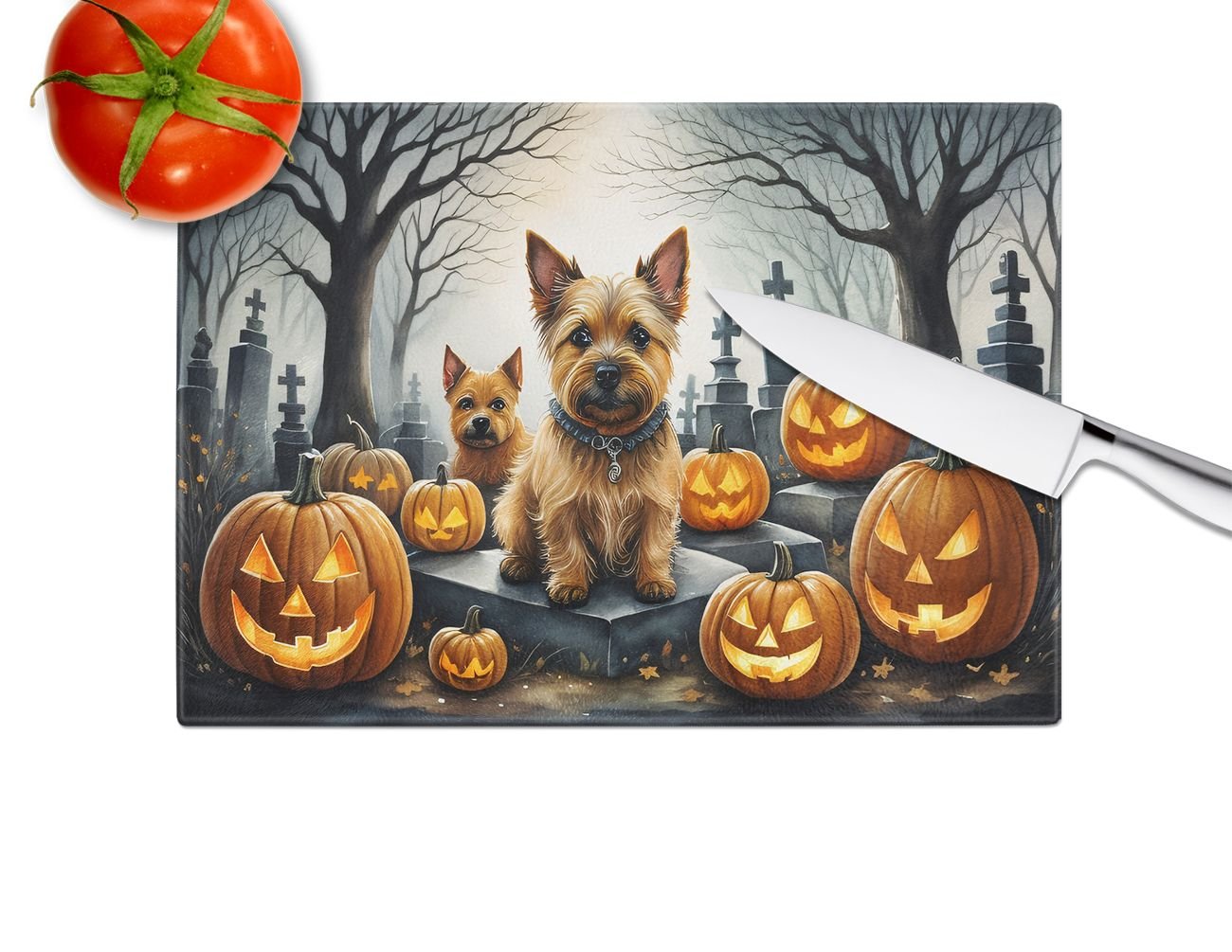 Home > NEW Norwich Terrier Spooky Halloween Glass Cutting Board Decorative Tempered Glass Kitchen Cutting and Serving Board Large Size Chopping Board