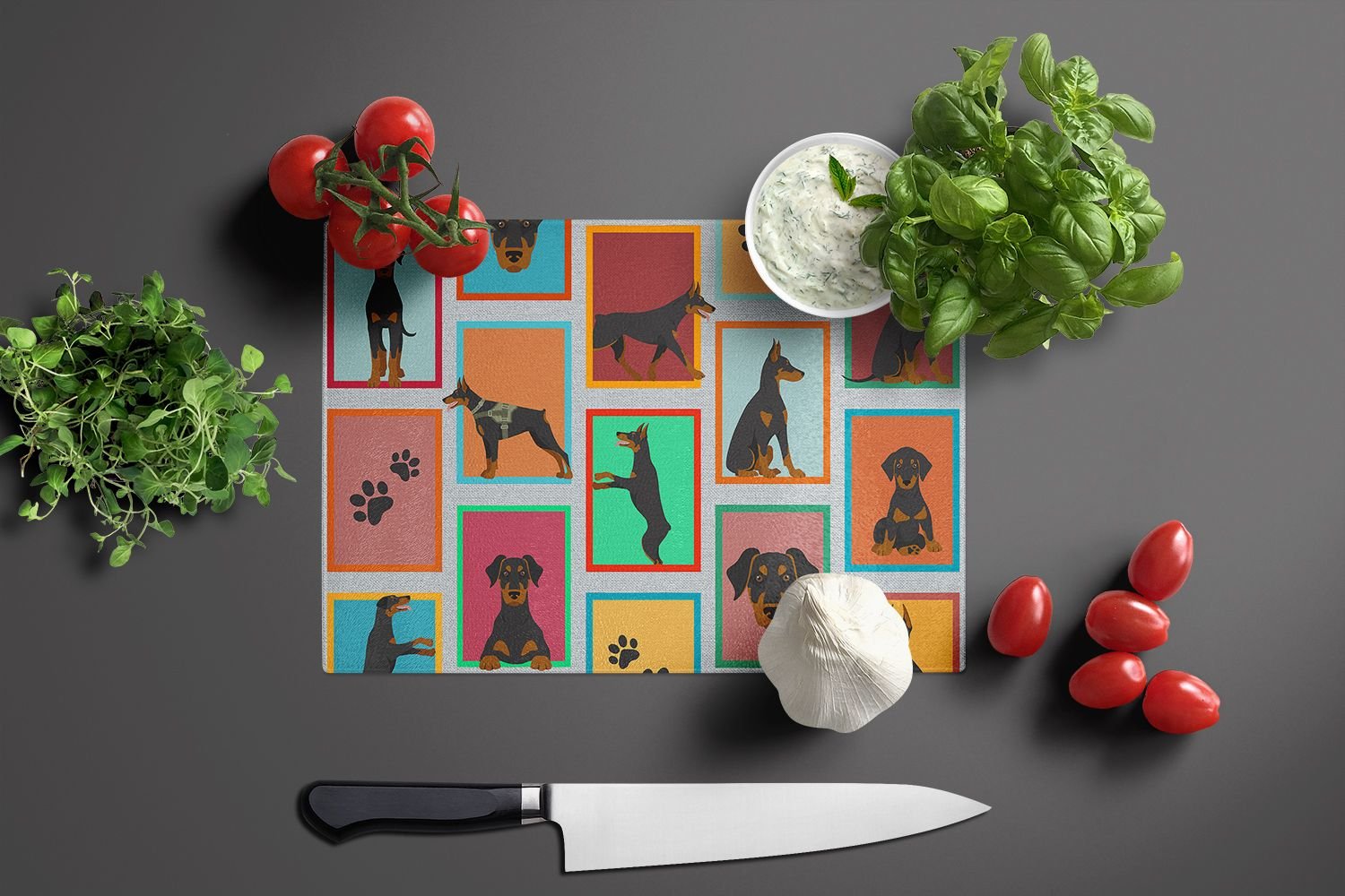 Home > NEW Lots of Doberman Pinscher Glass Cutting Board Decorative Tempered Glass Kitchen Cutting and Serving Board Large Size Chopping Board
