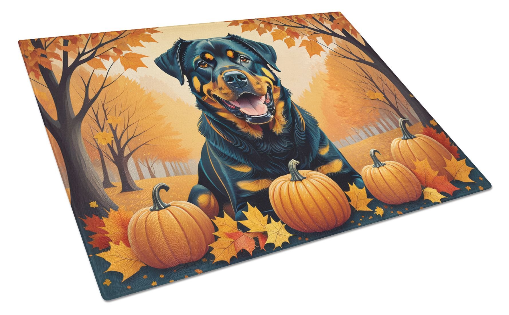 Home > NEW Rottweiler Fall Glass Cutting Board Decorative Tempered Glass Kitchen Cutting and Serving Board Large Size Chopping Board