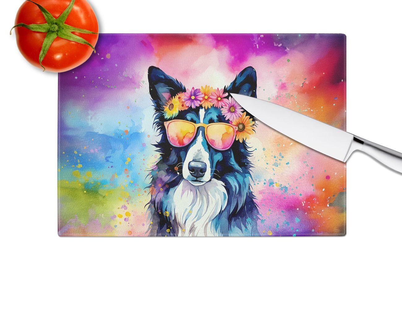 Home > NEW Border Collie Hippie Dawg Glass Cutting Board Decorative Tempered Glass Kitchen Cutting and Serving Board Large Size Chopping Board