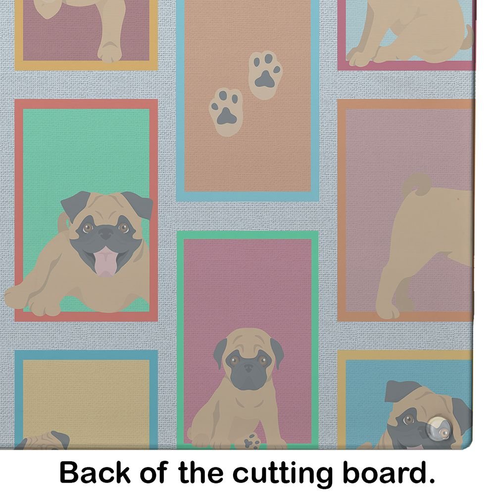 Glass Cutting Board featuring breed specific Pug artwork. Introduce your kitchen to the vibrant, large Decorative Glass Cutting Board from Caroline's Treasures. Crafted from resilient tempered glass, this board is not only a utilitarian necessity but also a colorful art piece. With its generous dimensions of 15 inches in height and 12 inches in length, it offers ample space for all your cutting needs. Every piece showcases captivating artwork from distinguished artists, bringing an aesthetic edge to your kitchen. Beyond its attractive design, this cutting board ensures your countertop stays pristine and unscathed, owing to its heat-resistant properties. Engineered with user convenience in mind, it features non-skid feet for stability, and rounded corners for additional safety. Its robust construction renders it virtually unbreakable, guaranteeing longevity. The board comes with protective feet bumpers, maintaining its position during use. This product is recommended to be hand washed only. Proudly printed and assembled in the United States, this cutting board exemplifies superior craftsmanship. With Caroline's Treasures' Decorative Glass Cutting Board, you're investing in a blend of functionality and artistic flair.