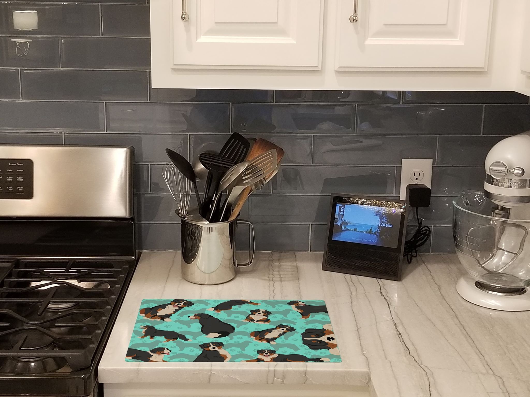 Glass Cutting Board featuring breed specific Bernese Mountain Dog artwork. Introduce your kitchen to the vibrant, large Decorative Glass Cutting Board from Caroline's Treasures. Crafted from resilient tempered glass, this board is not only a utilitarian necessity but also a colorful art piece. With its generous dimensions of 15 inches in height and 12 inches in length, it offers ample space for all your cutting needs. Every piece showcases captivating artwork from distinguished artists, bringing an aesthetic edge to your kitchen. Beyond its attractive design, this cutting board ensures your countertop stays pristine and unscathed, owing to its heat-resistant properties. Engineered with user convenience in mind, it features non-skid feet for stability, and rounded corners for additional safety. Its robust construction renders it virtually unbreakable, guaranteeing longevity. The board comes with protective feet bumpers, maintaining its position during use. This product is recommended to be hand washed only. Proudly printed and assembled in the United States, this cutting board exemplifies superior craftsmanship. With Caroline's Treasures' Decorative Glass Cutting Board, you're investing in a blend of functionality and artistic flair.