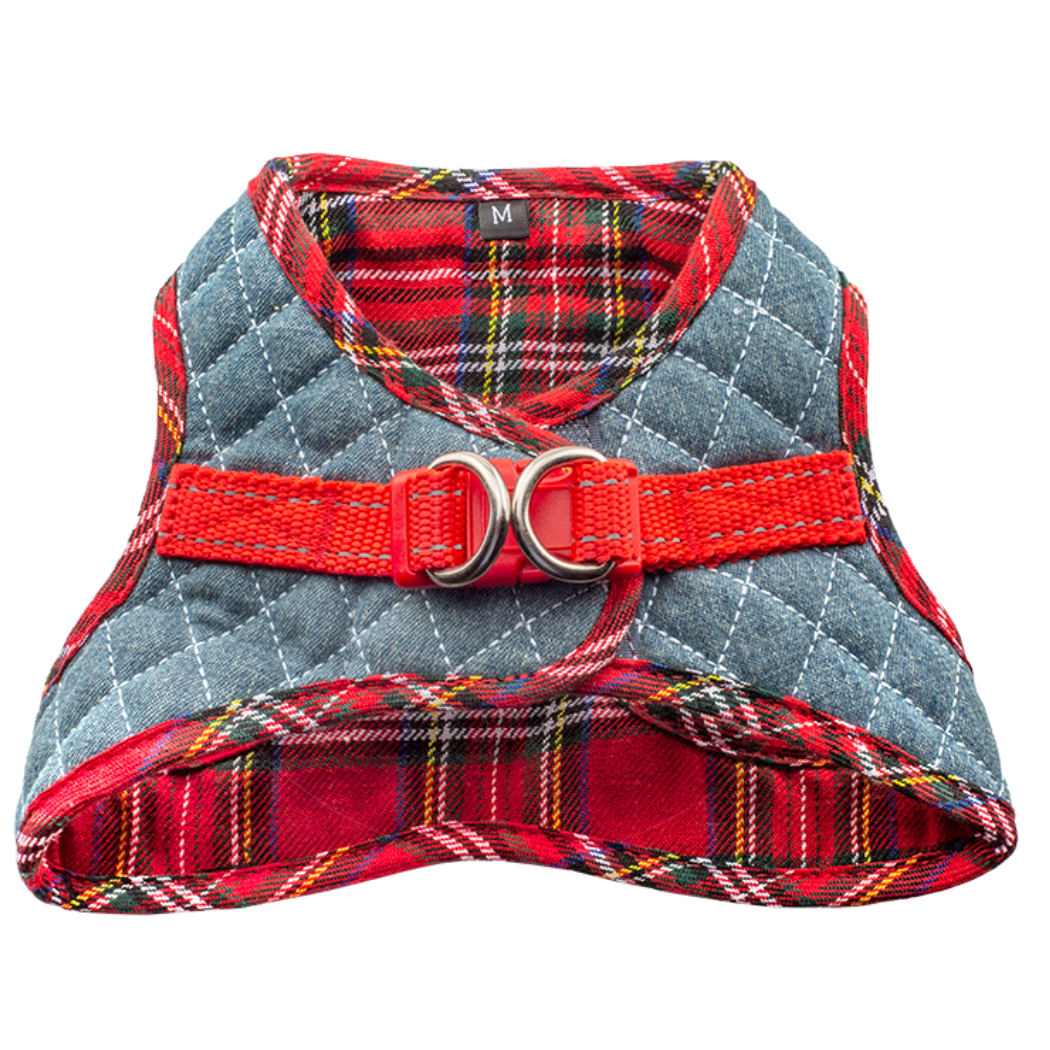 Step-In Denim Dog Harness - Red Plaid