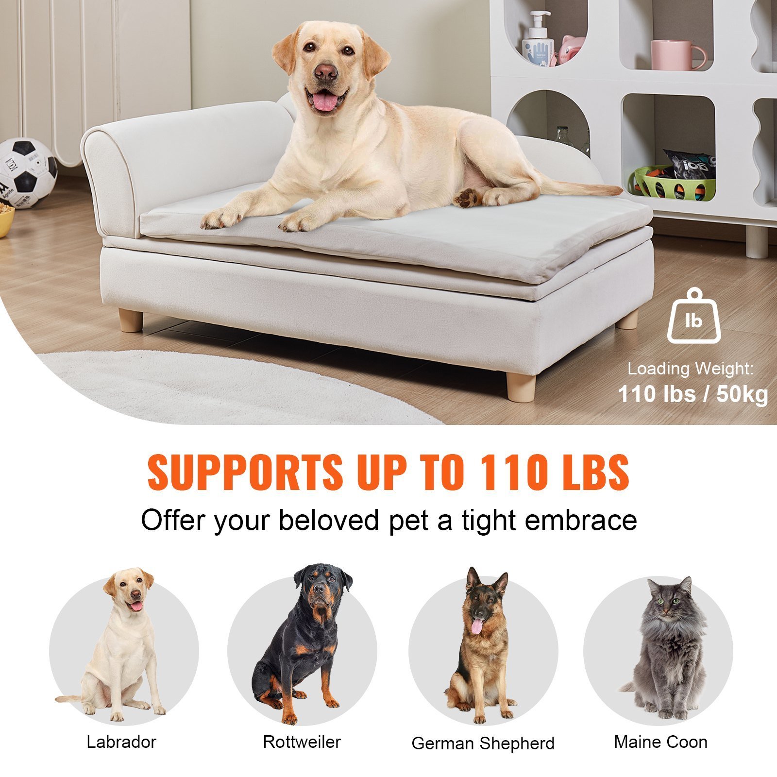 VEVOR Pet Sofa, Dog Couch for Large-Sized Dogs and Cats, Soft Velvety Dog Sofa Bed, 110 lbs Loading Cat Sofa, White