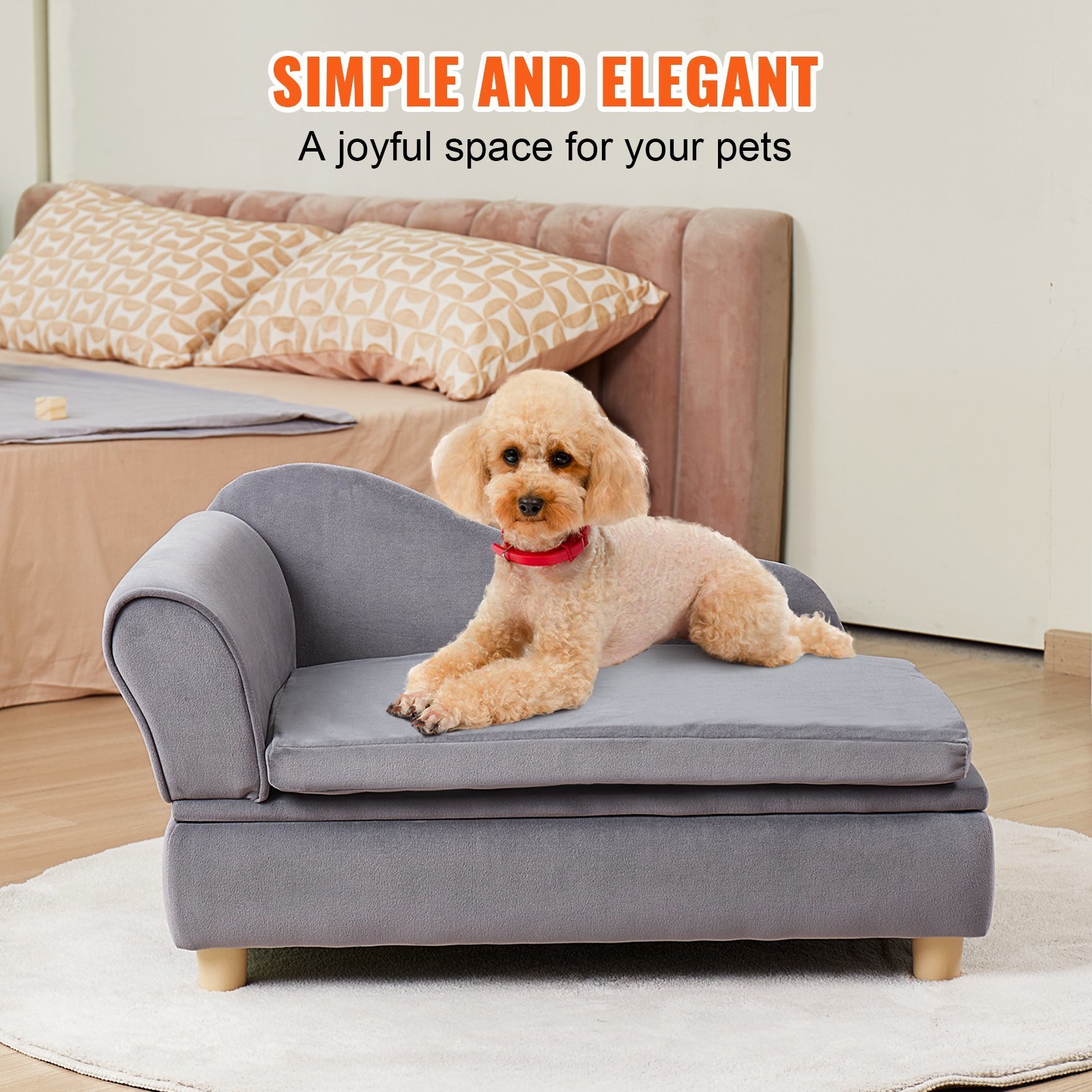 VEVOR Pet Sofa, Dog Couch for Medium-Sized Dogs and Cats, Soft Velvety Dog Sofa Bed, 81 lbs Loading Cat Sofa, Grey